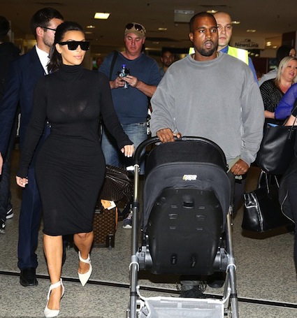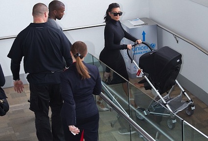 33-годишната бивша съпруга на баскетболиста от НБА Крис Хъмфрис беше снимана от папараци как бута количката с едногодишната си дъщеря Норт, облечена с черна, плътно прилепнала по тялото й рокля, подчертаваща огромните й задни части. Ким бе придружавана от настоящата си половинка - рапъра Кание Уест, който изглежда нямаше нищо против, че всички зяпат апетитното дупе на любимата му.