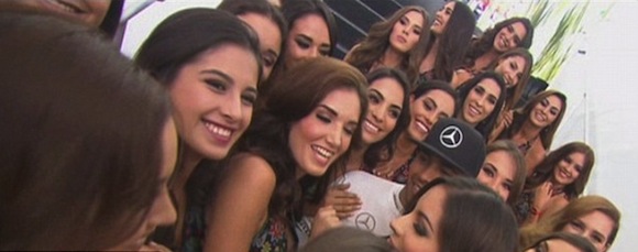 Британецът спечели своята трета световна титла в Остин в края на октомври, а вчера финишира втори след съотборника си Нико Розберг. След състезанието Хамилтън позира за селфи с момичетата край решетката, които "подгряват" публиката и пилотите.