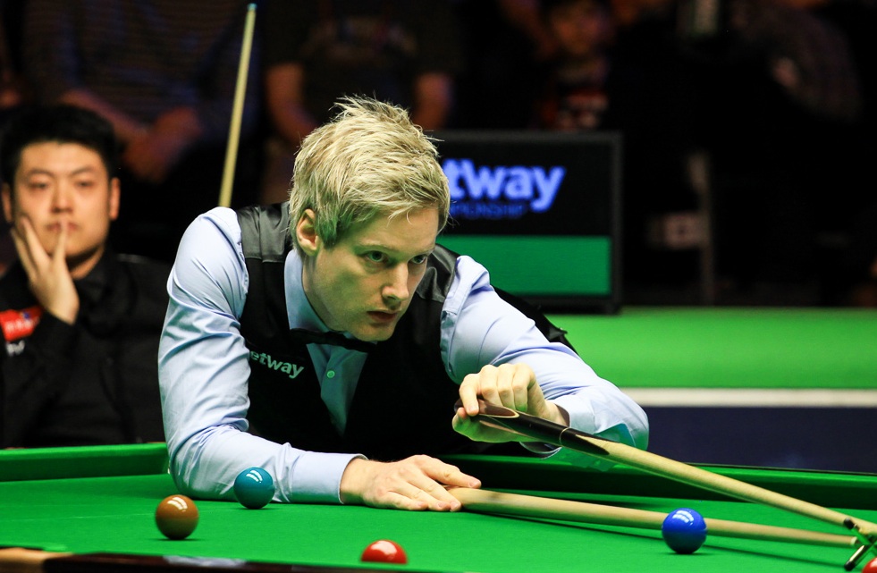 Страхотна първа сесия на финала на Шампионата на Обединеното кралство по снукър в Йорк. Нийл Робъртсън (Австралия) и Уенбо Лян (Китай) не просто демонстрират цялата красота на играта, но зрителите видяха и максимален брейк. Той бе дело на австралиеца в шестата партия, като Машината от Мелбърн се оттегли на почивката с преднина от 5:3 фрейма.