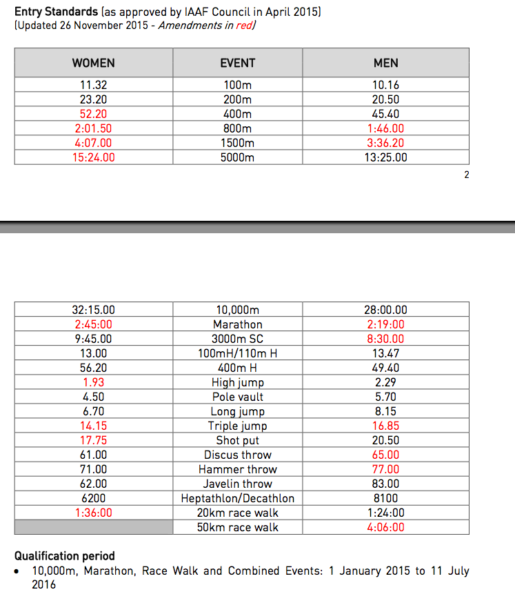 Вижте всички нормативи за Рио, оцветените в червено са коригираните: