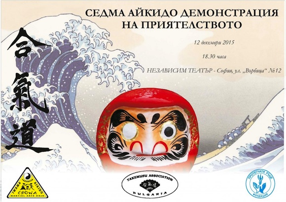 На 12 декември (събота) от 18.30 часа в столичния „Независим театър“, за седми пореден път ще се проведе Айкидо демонстрация на приятелството. Това събитие обединява и показва голямото разнообразие от школи и подходи в бойното изкуство, наричано от своя създател Морихей Уешиба – „Изкуство на мира”. Освен участието на голяма част от клубовете в страната за поредна година айкидо демонстрацията на приятелството ще бъде и с международен характер, като след като миналата година в препълнената зала на „Модерен Театър“ уменията си представиха клуб „Айки Будо“ от Букурещ, Румъния, тази година заявка за участие са подали „Айки Ен“ от Загреб, Хърватска, а специален гост на събитието ще бъде Паоло Коралини сенсей от Италия, носител на високата титла Шихан, 7 дан.