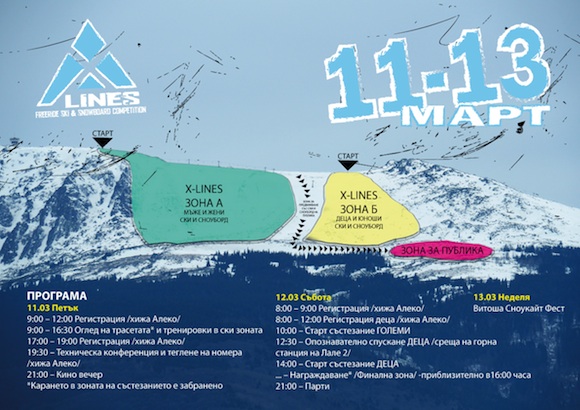 Този уикенд на Витоша ще се състои екстремната ски и сноуборд надпревара в необработен терен - "Витоша X Lines 2016". Състезанието се провежда с подкрепата на Столична община и е част от спортния календар на София. Събитието се организира за втора поредна година на Витоша, а основната цел на организаторите е да го превърнат в една добра традиция на любимата планина.