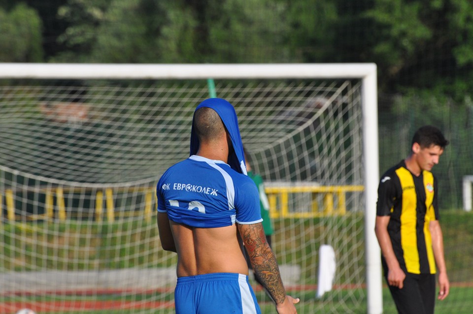 В 33-ата минута дойде и първият точен удар за Евроколеж. Ники Димитров стреля от далечно разстояние, но Мартин Димитров се справи. Пет минути преди края на първото полувреме и резервата Наско Милев пробва да се разпише. Той излъга двама бранители на "колежани", но шутът му рикошира и не се превърна в сериозна опастност.