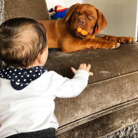 Кучето на Лионел Меси, което жена му Антонела Ракуцо му подари точно преди 12 месеца, вече е гигант. Това показва снимка в "Инстаграм", качена там именно от красивата брюнетка. На нея се вижда как звездата на Барса и синовете му галят гигантския пес, който се е изтегнал блажено на дивана.