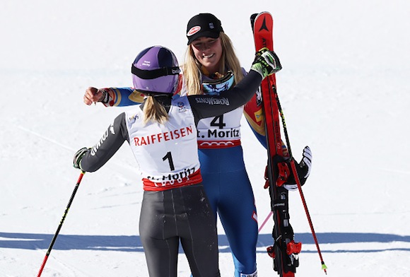 На второ място днес остана олимпийската и световна шампионка в слалома Микаела Шифрин (САЩ). Тя завърши с изоставане от 34 стотни от секундата, след като беше най-бърза във втория манш.