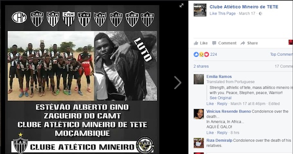 "Ние скърбим за нашия играч, нашия брат, нашия приятел, нашия син и нашия централен защитник Естевао Алберто Жино, който бе едва на 19. Той имаше многообещаващо бъдеще, но загуби своя живот, ставайки жертва на крокодил на брега на река Замбези. Изпращаме своите най-искрени съболезнования на семейството му. Случилото се е напоправима загуба за всички нас. Естевао бе пример за послушание, уважение и смирение и остави огромна празнота в живота ни", се казва в съобщението.