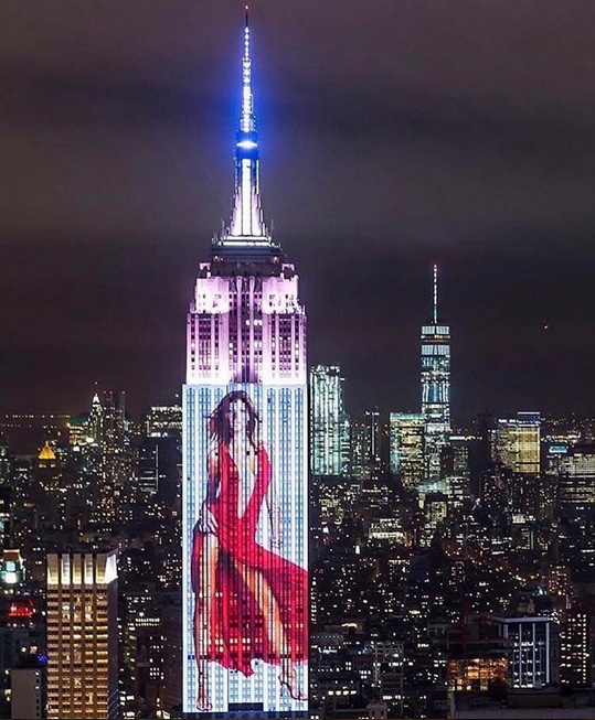 Супермоделът Жизел Бюндхен засия върху небостъргач в Ню Йорк. Снимка на бразилската красавица, дело на един от топфотографите на световната модна сцена Патрик Демаршелие, изгря в тъмното върху Емпайър Стейт Билдинг.