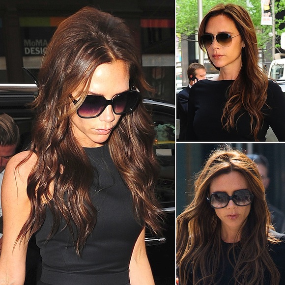 С огромните тъмни очила, които носи и в дъжд, и в студ, 43-годишната дизайнерка се опитва да прикрие торбичките под очите си, причинени й от Бруклин (18 г.), Ромео (14 г.), Круз (12 г.) и малката Харпър (5 г.).