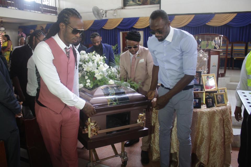 Болт носеше ковчега на своя добър приятел заедно с други спортисти, сред които бившият футболист на Болтън Рикардо Гарднър и Ян Гудисън. Болт участва и в изкопаването на гроба на Мейсън. Световният рекордьор в спринта беше със слънчеви очила, но дори и зад тях се видяха сълзите, които той проливаше по време на погребението.