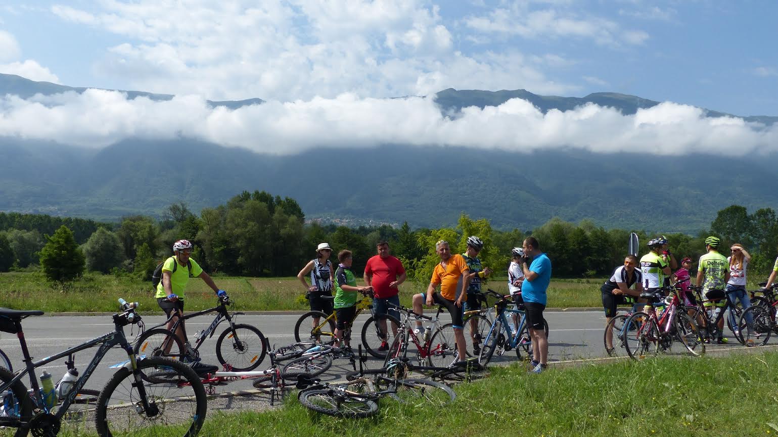 След като групата достигна с. Банско, Македония, някои от велосипедистите се върнаха обратно в Петрич, а повечето поеха по дългият и красив път през главното било на планината към езерото Дойран.