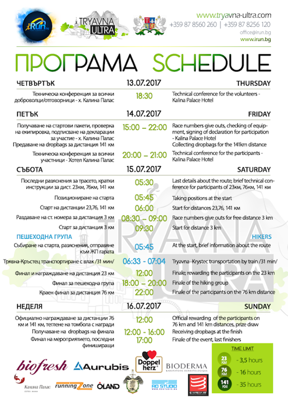 Стартът за трите дистанции бягане ще бъде даден точно в 06:00 часа сутринта на 15-ти юли от площада пред Община Трявна.