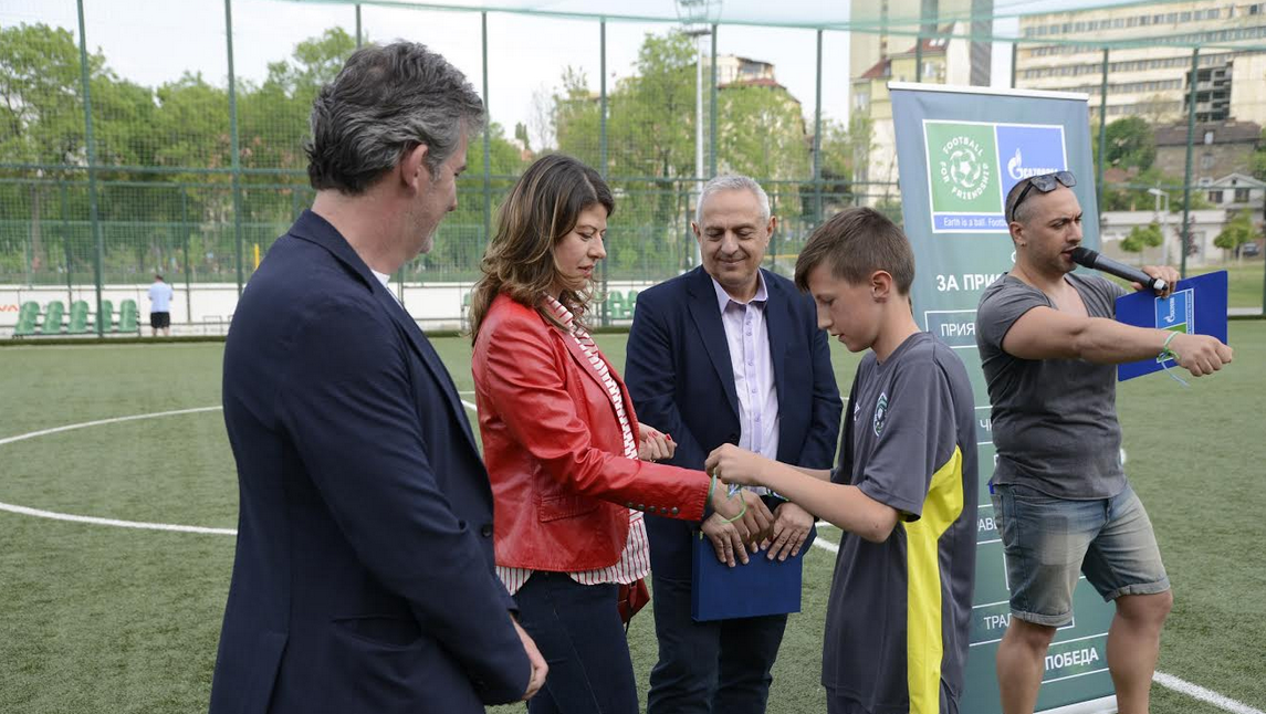 Младите посланици на България в проекта „Футбол за приятелство“ – 12-годишните Александър Георгиев и Миа Гигова, заедно с футболната легенда Емил Костадинов, г-н Антон Попов, зам.- изпълнителен директор на БФС, г-жа Савина Савова, кмет на Район „Възраждане“ и хип-хоп изпълнителят Играта, дадоха начало на демонстративни мачове с участието на 60 деца от столицата. По този начин те отбелязаха Международния ден на футбола и приятелството и популяризираха спорта, взаимното уважение и здравословния начин на живот.