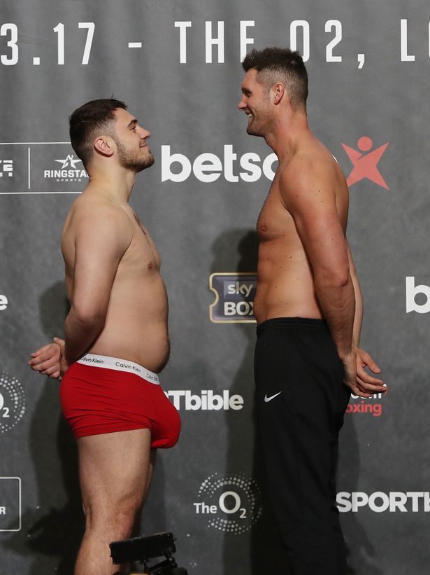 а него двамата боксьори са един срещу друг на кантара, като разликата във височината категорично е в полза на Хауи. Макар и по-дребен обаче, Алън прави повече впечатление с нещо друго, а именно с огромния си "пакет".