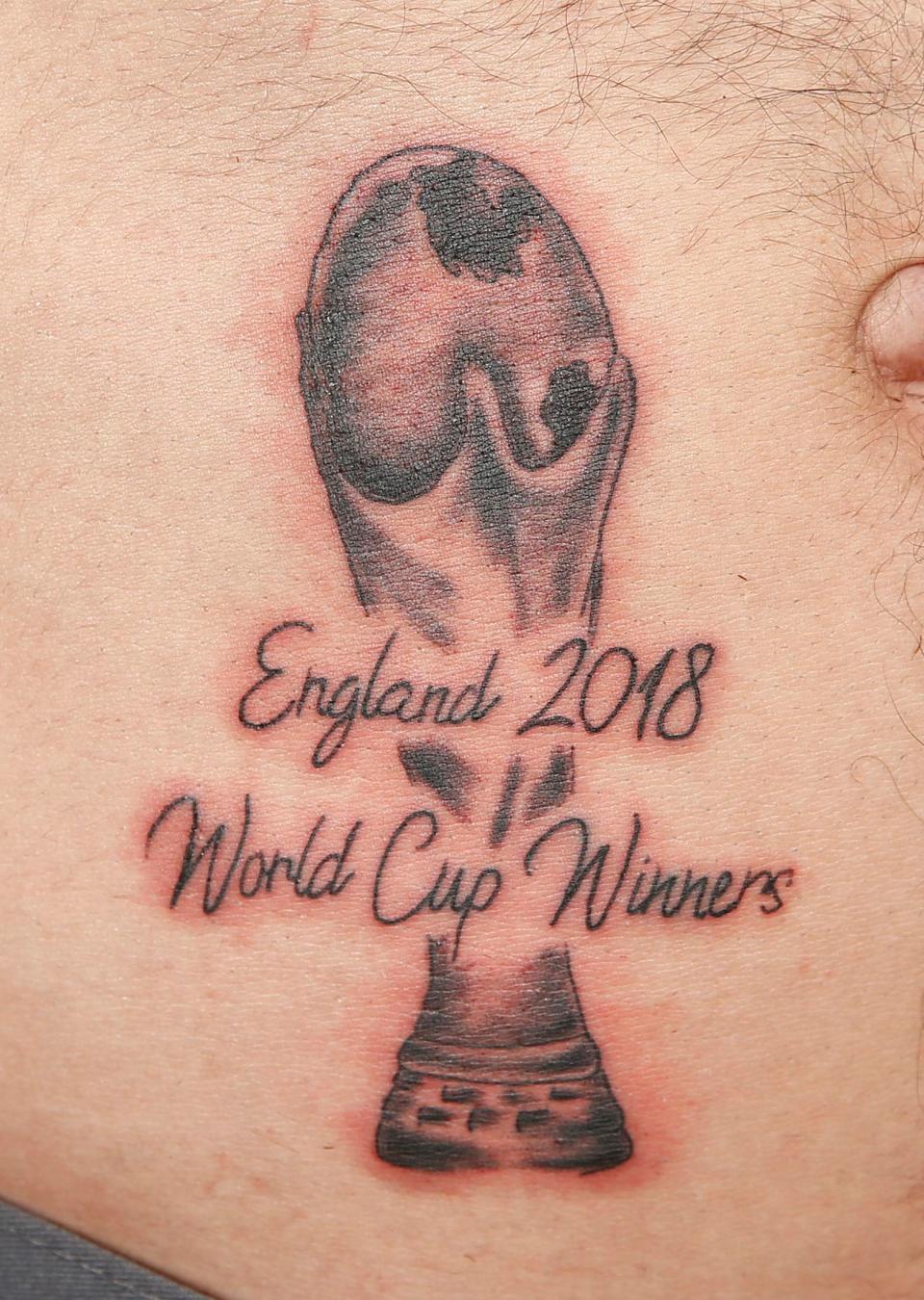 Той отишъл в студиото в понеделник след разгромната победа на “Трите лъва” над Панама с 6:1 и поискал татус с трофея и надпис: “Англия 2018, Победител в Световната купа”.