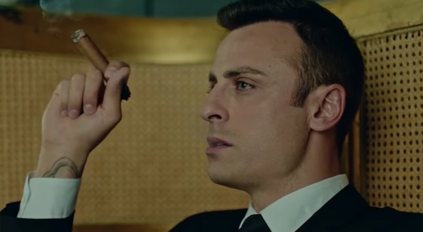 "Къде е моята дрога, бе, идиот?!", продължава Бербатов, хващайки за гушата друг от актьорите - Бойко Кръстанов, който му е подчинен.