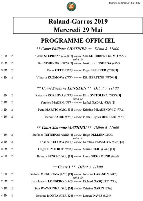 Ето пълната програма за сряда на “Ролан Гарос”: