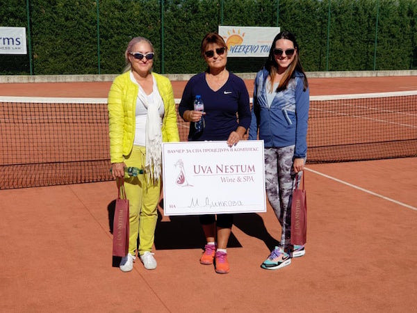 Освен много тенис участниците в Uva Nestum Open II имаха възможност да опитат и от чудесните вина на собствената изба на Uva Nestum Wine & SPA. Даниела Сиракова и Нели Огнянова спечелиха по една бутилка бутиково вино, а състезатели и гости разчитаха за здравословната си хидратация на минерална вода “Девин”. Мариана Динкова получи специалната награда на домакините – нощувка и СПА процедури в петзвездния комплекс. Партньорът й на двойки Георги Дойчев, както и победителите на двойки също си тръгнаха с ваучери за нощувка и вино.