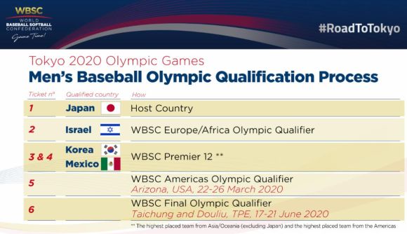 Световната бейзболна и софтболна конфедерация (WBSC) постигна историческо споразумение с Мейджър лийг бейзбол (МЛБ) и асоциацията на професионалните играчи (MLBPA). Трите страни се договориха клубовете от МЛБ да пуснат свои бейзболисти да участват на олимпийските игри в Токио '20 и в квалификационните турнири преди тях.