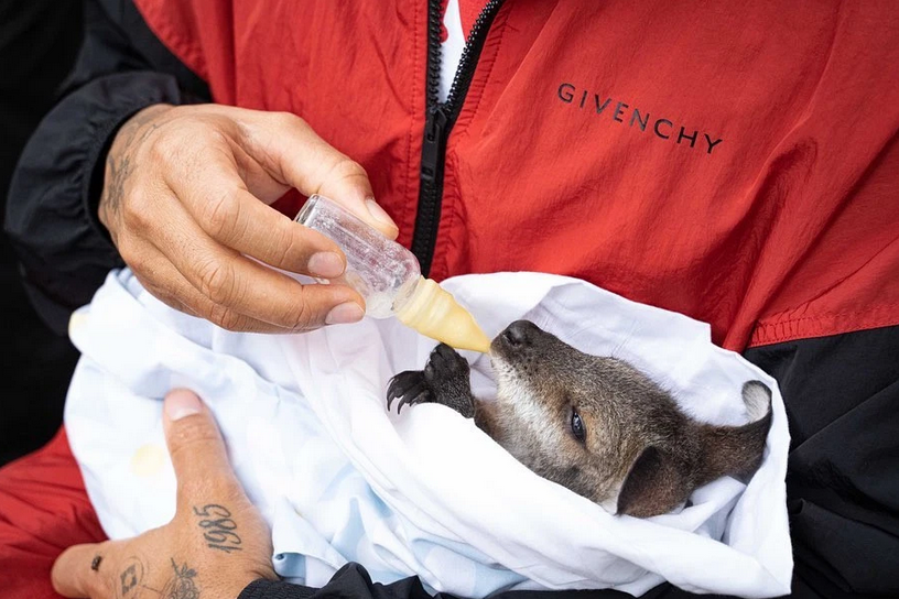Докато хранеше с биберон бебе кенгуру, той призна, че е останал с разбито сърце от последиците от разбушувалата се стихия - над 1 млрд животни бяха засегнати от пожарите и ще минат години преди Австралия да се възстанови напълно.
