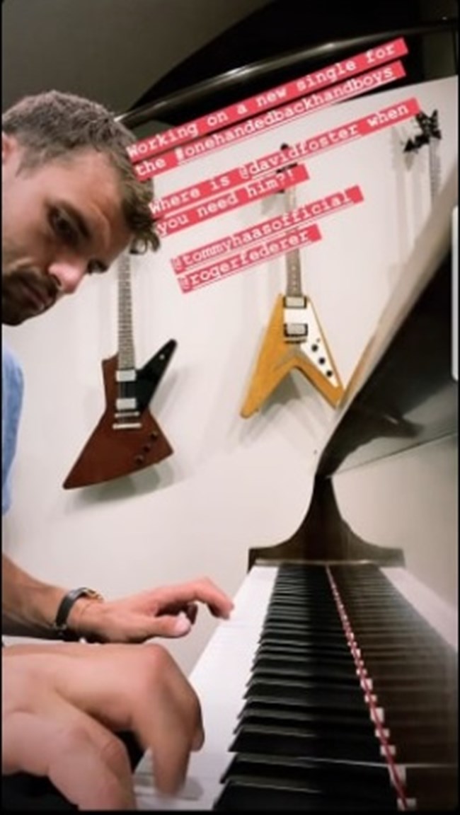 Българската звезда в тенис обаче не скучае. Димитров репетира за ново музикално парче.