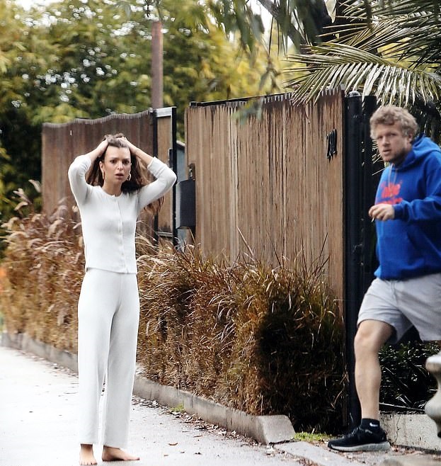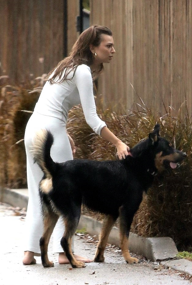 Папараци уловиха целия ужас, който преживя бившата сърфистка с кучето си. Въпреки, че беше ужасена от случващото се Емили отново изглеждаше изумително. Тя подчерта перфектното си тяло в небрежен спортен екип от слонова кост и боса.