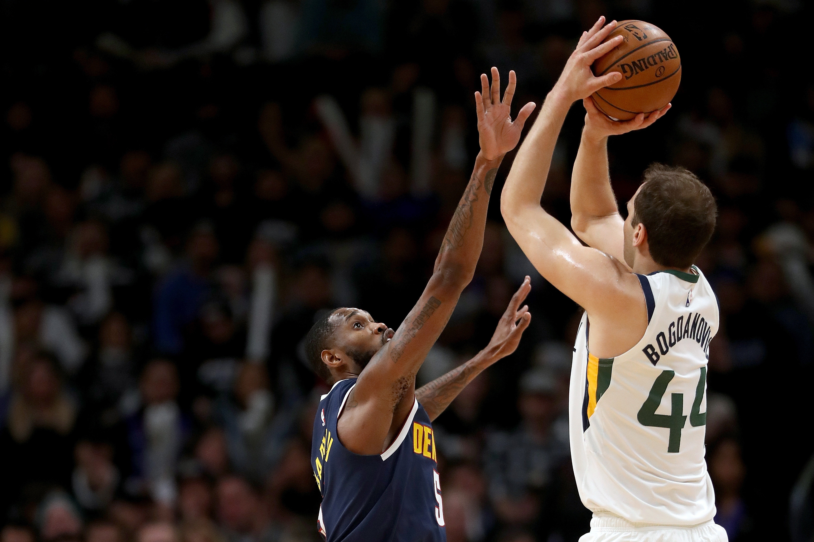 Боян Богданович от Юта е първи по нанизани тройки от нулата отдясно с 44. Гардът на Далас Тим Хардауей-младши стреля 52.2%, а най-лошо се представя Джей Краудър от Маями с 28.9%.