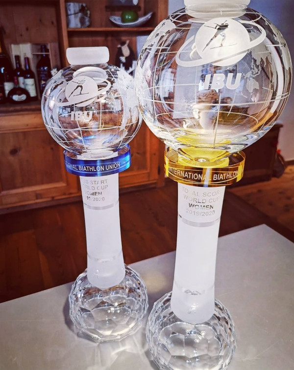 Красивото лице на женския биатлон Доротея Вирер се похвали във Facebook, че трофеите, които спечели в края на изминалия вече сезон - Големия кристален глобус и малката Световна купа в масовия старт, вече са пристигнали в нейния дом.