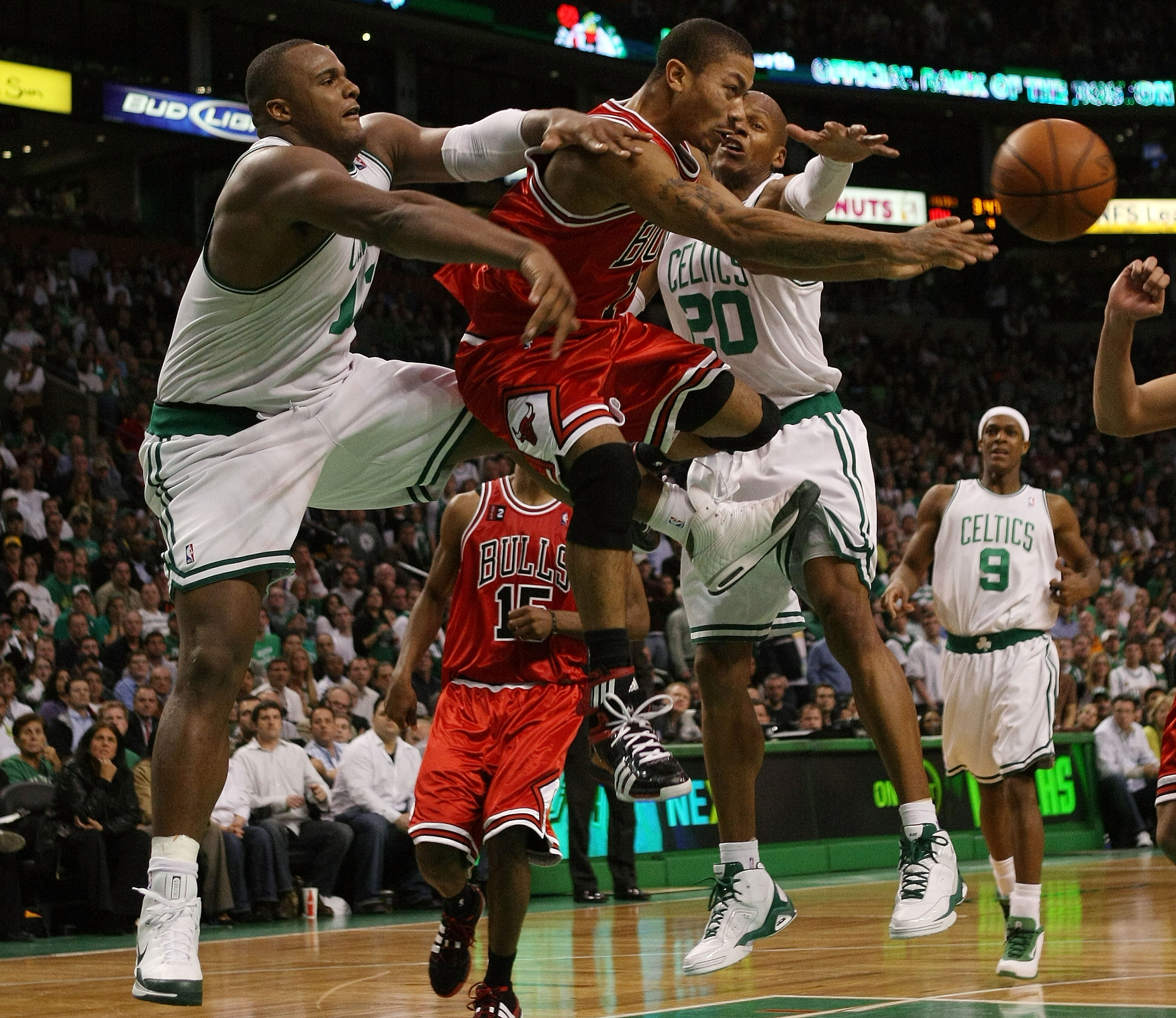 На 18 април 2009 г. 20-годишният новобранец от тима на Чикаго Булс Дерик Роуз нанизва 36 точки в дебюта си в плейофите на НБА, с което изравнява 39-годишния рекорд на Карийм Абдул-Джабар за най-много вкарани точки в плейофен мач от дебютант. И за да направи дебюта си още по-невероятен, Роуз оформя "дабъл-дабъл" с 11 асистенции, стреля 12 от 19 от полето и 12 от 12 от наказателната линия, а Чикаго отмъква първия двубой в серията в "ТД Гардън" със 105:103 след продължение.