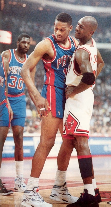"Ако Майкъл ръководеше играта от централна позиция, ние го принуждавахме да тръгне наляво и слагахме двама играчи срещу него. Ако той стоеше отляво, отново двама отиваха да го пазят на момента. Ако беше отдясно, минавахме на бавна двойна преса. Той можеше да те нарани еднакво от двете крила - по дяволите, той можеше да те направи на пух и прах и от будката за хот-дог. Но ние просто искахме да променим начина на игра. Ако той бе стигнал до правоъгълника, слагахме висок играч срещу него. Другото правило бе, че всеки път, когато те подмине, трябва да го спреш физически. Ако тръгне от заслон, удряш го. Не искахме да играем мръсно, знам, че някои хора смятаха, че правехме това. Но ние трябваше да играем с много контакт и да бъдем яростни физически", казва Чък Дейли пред Sports Illustrated, който е старши треньор на Пистънс по онова време.