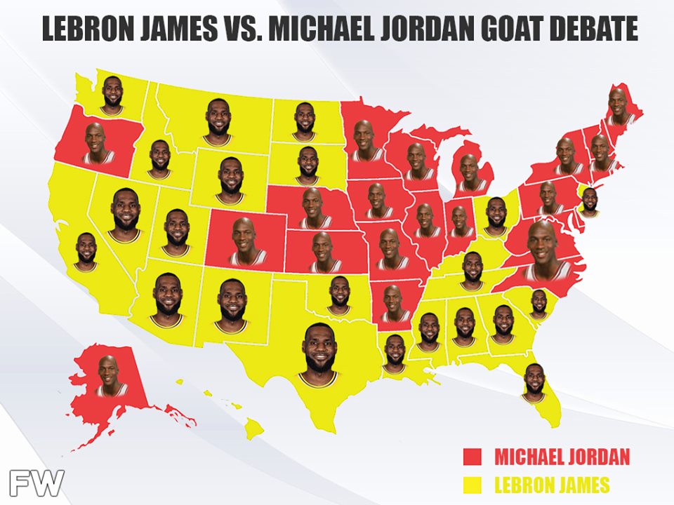 Дебатът за това кой е най-великият баскетболист в историята на играта никога не е бил толкова ожесточен. Бивши играчи, журналисти и дори обикновени хора с достъп до социалните мрежи дават своите мнения за формалната битка между ЛеБрон Джеймс и Майкъл Джордан. И като стана дума за социални мрежи, анализатори на НБА от компания за спортни залози са използвали данни от 100 хиляди публикации в "Туитър" през миналата седмица, за да определят кой е считан за най-великия във всеки един от 50-те щата в Америка.