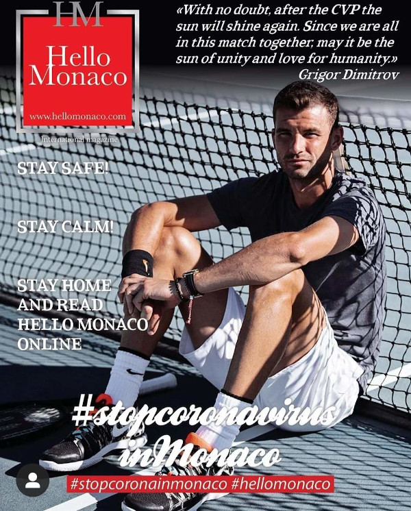 Григор Димитров бе избран за лице на корицата на списанието Hello Monaco, което излиза на английски. Българската звезда в тениса живее в княжеството, но в момента е в Калифорния под карантина заради пандемията от коронавирус. Димитров говори точно за заразата.