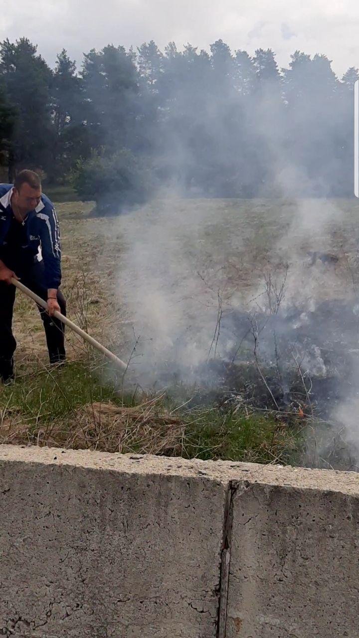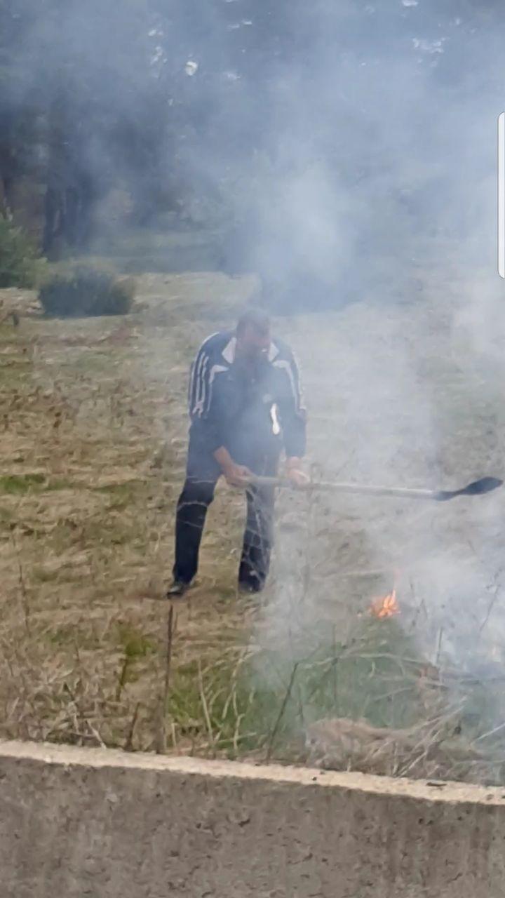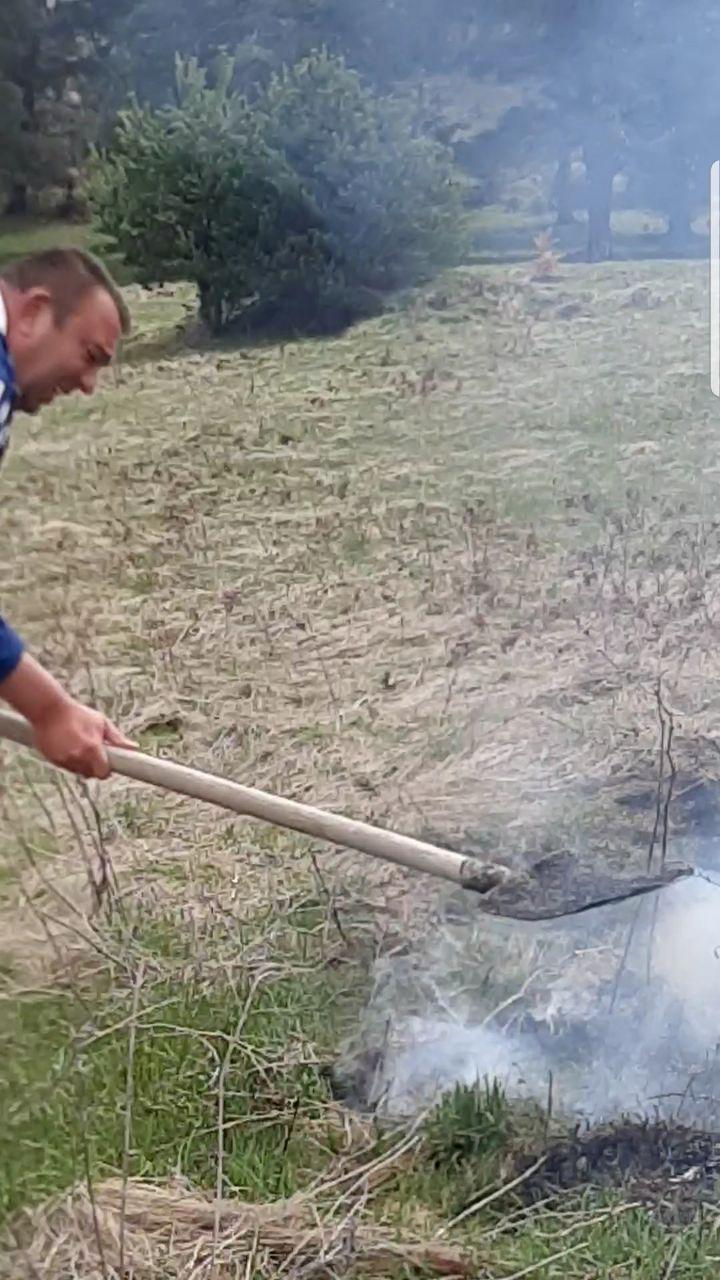 Преди обяд усетих дим и излязох в задния двор да видя какво става. Тогава видях, че полето, което е в непосредствена близост до пътя и само на метри от гората е цялото в пламъци. Огънят бе обхванал около 300-350 квадрата сухи треви по продължение и от вятъра вече пълзеше към гората. Има много изсъхнали дървета, гъста е растителността и беше ли стигнал огънят до там не бих искал да гадая за последствията. Нямаше време да звъня на пожарната, защото докато дойдеха, щеше да е късно и да пламне целия район. Веднага събудих малката ми дъщеря Мария, която е 8-и клас и племенника Мартин, който пък е едва на 9 години и се заехме с гасенето.