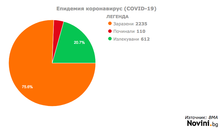 2235 са потвърдените случаи на COVID-19 у нас. Броят на починалите е 110, а 612 са излекуваните.