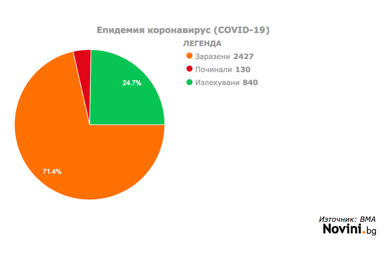 Вече у нас общо 2427 са случаите на заразени с коронавирус. Увеличението за изминалия ден е с 0,8%.