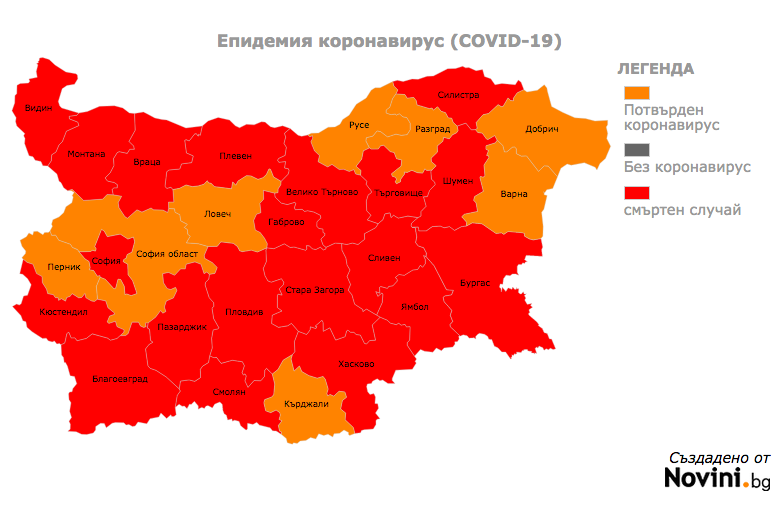 Новите заразени са констатирани в областите София (4 случая), Пазарджик (5 случая), Ямбол (4 случая), Благоевград (3 случая), ), Велико Търново (1 случай), Сливен (2 случая).