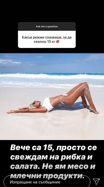 Ако се вярва на думите на певицата, има и положителна новина от разлъката й със спортиста - тя продължава да слабее ударно. Вече била свалила 15 килограма, като наблягала на салатки и месо.