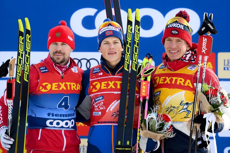 Норвегия триумфира в мъжкия спринт днес от веригата в ски-бягането "Тур дьо Ски" във Вал Ди Фиеме, след като Йоханес Клаебо беше категоричен във финала с 3:03.78 минути. След него в люта битка за 2-ото място спореха руснаците Сергей Устюгов и лидерът в класирането Александър Болшунов.
