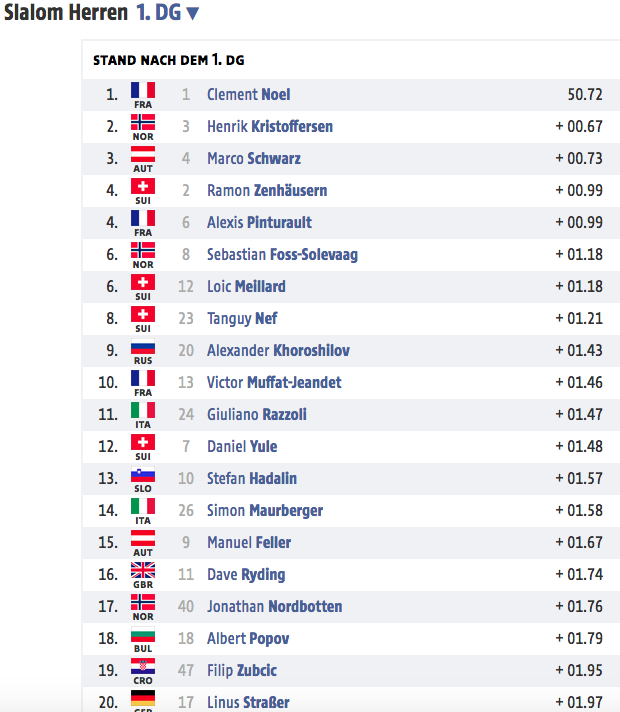Алберт Попов се класира за втория манш на слалома от Световната купа по ски алпийски дисциплини в швейцарския курорт Венген. Българинът даде време от 52.51 секунди и зае 18-о място. Той бе по-бавен с 1.79 секунди от французина Клемен Ноел, който е лидер след първия манш.