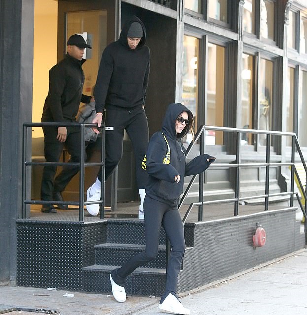 Те заложиха на спортни изцяло черни дрехи, докато държаха главите си наведени надолу, за да попречат на папараците да направят перфектните снимки.