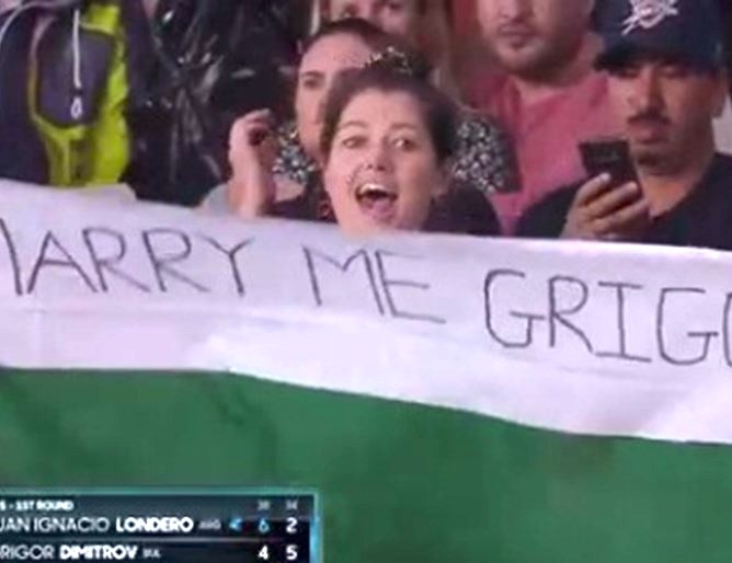Зрителка използва момента, когато камерата я показа, за да развее знаме с националните цветове на България и с надпис “Григор, ожени се за мен”.