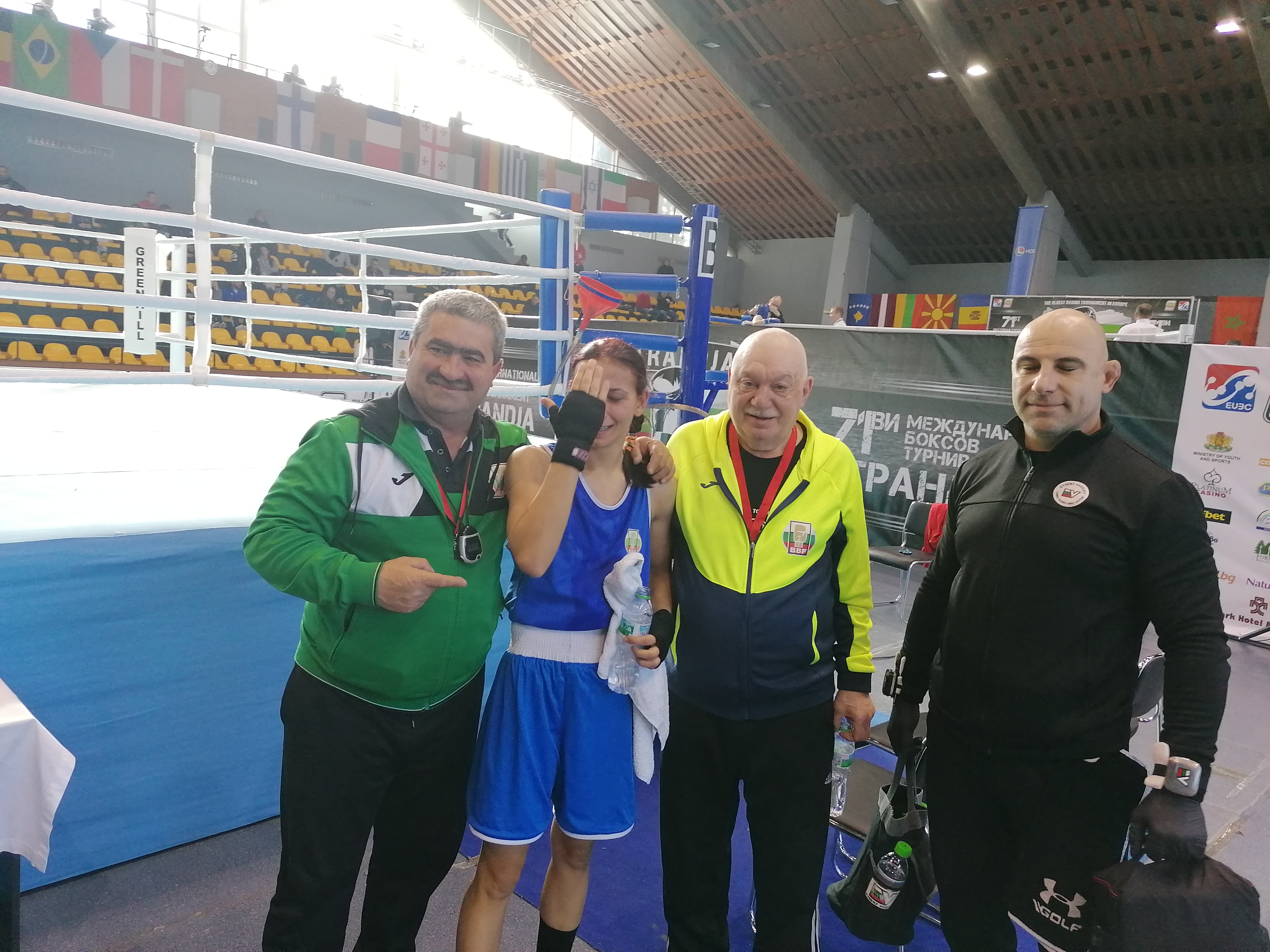 Димитрова (до 51 кг) пък не срещна трудности с Урсула Готлоб (Германия), като също победи с единодушно съдийско решение – 5-0. На четвъртфиналите Габриела ще се изправи срещу украинката Тетяна Коб, като мачът е утре следобед.