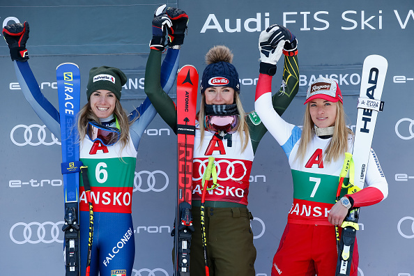 Втора днес остана италианката Марта Басино, която се представи отлично и в трите старта в Банско. Тя даде време с 29 стотни от секундата по-слабо от това на Шифрин. Басино бе втора и в спускането вчера, а в първото спускане в петък завърши пета.