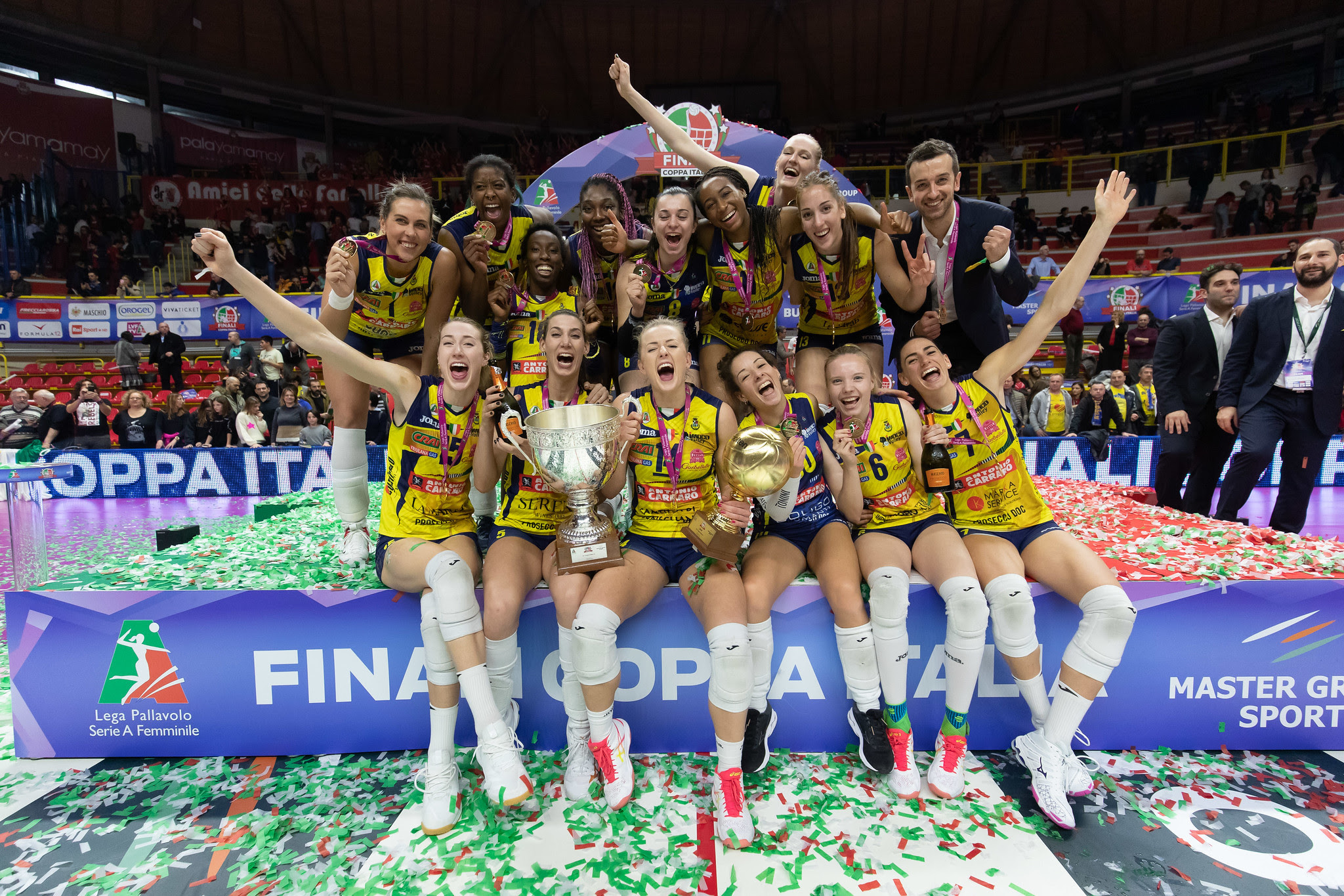Тимът на Имоко Волей (Конеляно) спечели за втори път Купата на Италия по волейбол за жени. Волейболистките на Даниеле Сантарели надиграха категорично Унет И-Уърк Ямамай (Бусто Арсицио) с 3:0 (25:20, 25:18, 25:16) в големия финал, изигран в "Пала Ямамай" пред 4397 зрители.