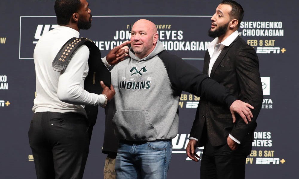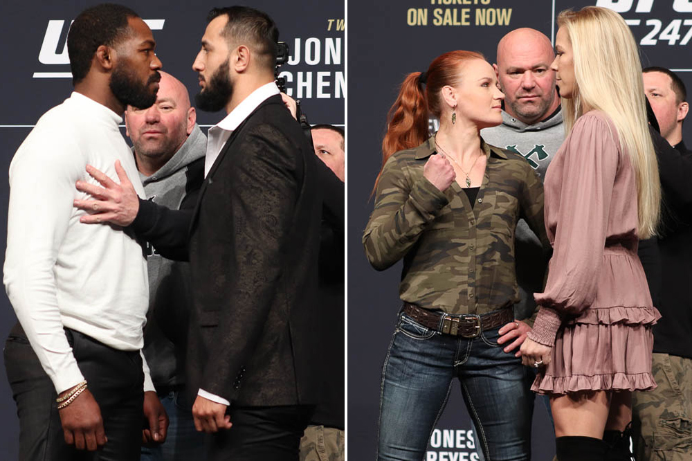 В главната среща легендарният Джон Джоунс ще се бие срещу Доминик Рейес, а залогът е златото в полутежка категория.