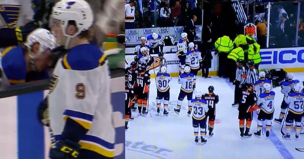 Защитникът Джей Боумийстър загуби съзнание на пейката на Сейнт Луис и това предизвика отлагане на мача от Националната хокейна лига на САЩ и Канада (НХЛ) срещу Анахайм. Той се съвзе след инцидента и беше откаран в болница, а двубоят бе прекратен при 1:1 и 7:50 оставащи минути в първата третина.