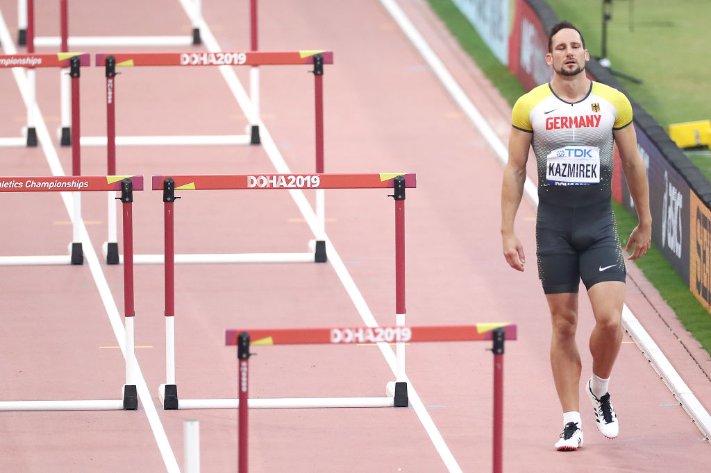 Бронзовият медалист в десетобоя от Световното първенство в Лондон през 2017 година Кай Казмирек (Германия) загуби всички шансове да се бори за отличие на планетарния форум в Доха. Германецът, който вървеше седми в подреждането след първия ден с 4315 точки, не успя да завърши бягането на 110 метра с препятствия във втория ден и се прости с надеждите за място в тройката.