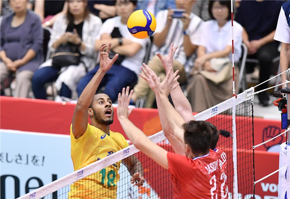 Мъжкият национален отбор по волейбол на Бразилия продължава възходящата си линия в световната купа. "Селесао" надигра категорично двукратния шампион в Лигата на нациите Русия с 3:0 (25:16, 25:22, 25:22) в мач от група В, изигран в Нагано.