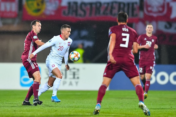 Полша не срещна никакви проблеми при гостуването си на Латвия и се наложи с 3:0. Роберт Левандовски заби хеттрик за тима на Йежи Бжечек. Звездата на Байерн (Мюнхен) се разписа на два пъти още до 13-ата минута, а през второто полувреме довърши домакините, водени от бившия наставник на Левски Славиша Стоянович. По този начин поляците запазиха лидерската си позиция в група "G" на евроквалификациите с 16 точки.