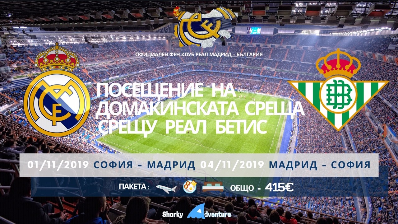 "Официален Фен Клуб Реал Мадрид - България организира Екскурзия до Мадрид в началото на месец ноември, за посещение на домакинската среща срещу отбора на Бетис. Всеки, който има интерес и желание, да се наслади на играта на Рамос, Бензема и Азар "на живо", може да посети официалната ни Страница във Фейсбук и да научи повече подробности по темата. Не се колебайте мадридисти, а се активизирайте и да покажем на света, че любовта ни към Реал Мадрид и "бялата магия" е огромна!"