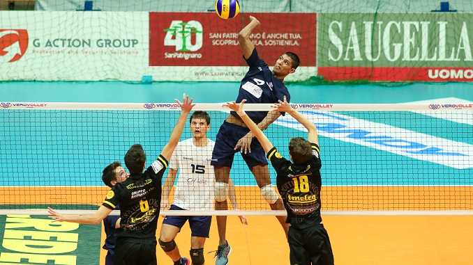 18-годишният Габриел Димитров записа първи мач, като част от състава на Веро Волей (Монца). Високият 202 сантиметра централен блокировач, който е роден в Русе, за първи път попадна в групата за мача на първия отбор на Монца, но не влезе в игра. Предишните два сезона Габриел Димитров бе част от втория състав на Веро Волей, който се състезаваше в Серия В. Габриел Димитров започна да играе волейбол в отбора на Дунав в Русе. Впоследствие, през декември 2015 година, той пристигна в Италия в състава на Лубе (Чивитанова), с който играе в състава до 14 години. През сезон 2016-2017 Димитров се премества в Сър Сейфти (Перуджа), където се състезава в първенството до 16 години и в Серия С. От спортната година 2017-2018 година е състезател на Веро Волей (Монца).